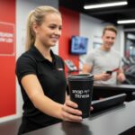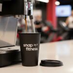 Koffiebeker zwart, herbruikbaar voor promotie Snap Fitness