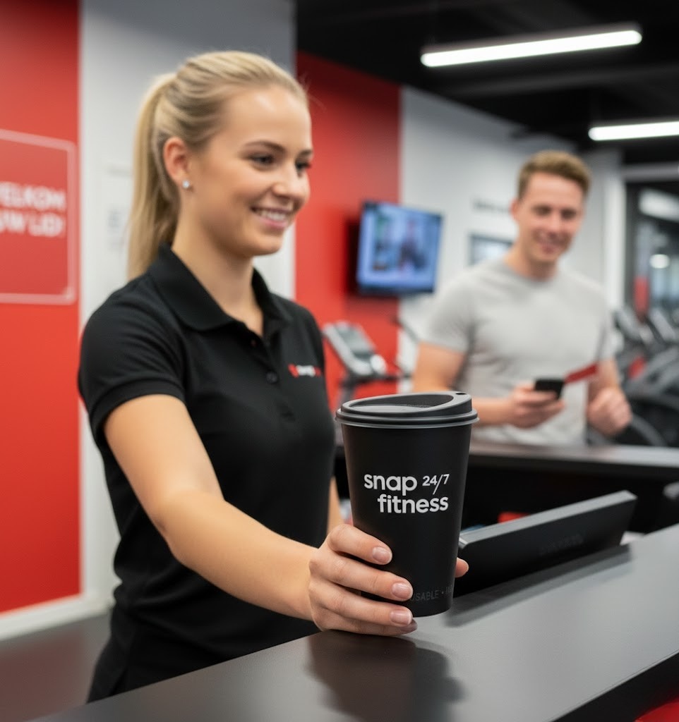 De Koffiebeker Zwart is al voorzien van het officiële Snap Fitness logo. Je ontvangt het product direct in de juiste huisstijl. Het logo is prominent op de beker geplaatst. Personalisatie met een eigen naam of een vestigingslogo is voor dit artikel niet mogelijk. Je bestelt direct de kant-en-klare, bedrukte koffiebeker.
